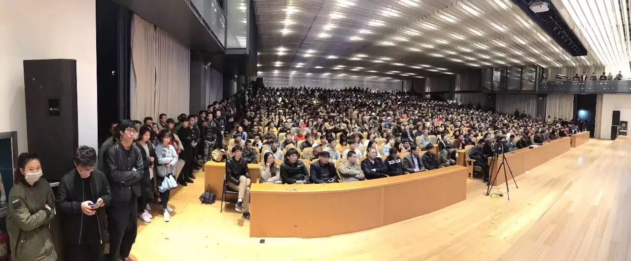 早在讲座开始前两个小时前会场就已经挤满了来听讲座的学生,整个会场座无虚席,连过道、楼梯都坐满了在艺术的道路上追寻梦想的艺术家。