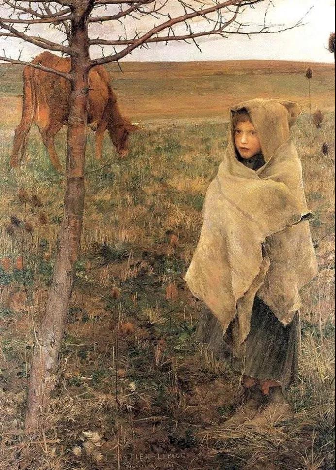 在19世纪的法国,各种艺术流派异彩纷呈,和勒帕热处于同时代的还有当时占据主流绘画的新古典主义和后来的浪漫主义以及影响甚广的现实主义,自然主义强调用科学规律和科学方法还原客观地还原人与自然、人与社会之间的关系,试图寻求一种不带个人主观情感的纯粹的客观性,最大程度地还原生活中的“真实”。我们从《贫穷的儿童》、《睡着了的小乞丐》等多种表现乡村儿童的作品中可以窥见到画家对19世纪法国农村艰苦生活的“真实”还原,这些作品深刻地表现了19世纪法国农村农民艰苦的生活,强调了绘画的社会批判性,这也是勒帕热自然主义绘画的另一个重要特征。